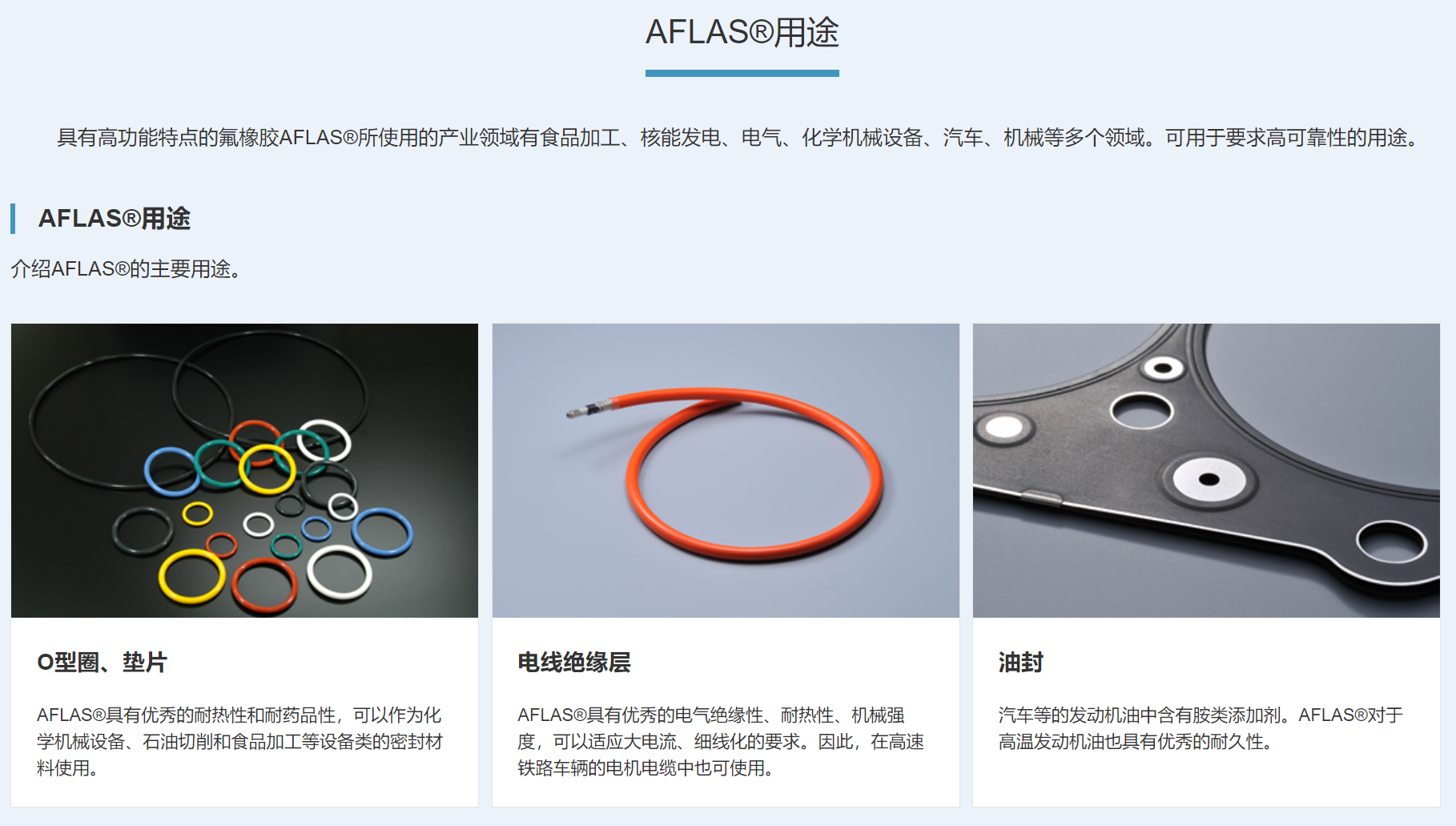 AFLAS®在具有均衡的氟橡胶本来特性的同时,对于以往的氟橡胶(偏氟乙烯类氟橡胶)无法适应的强碱、胺,具有良好的耐性。